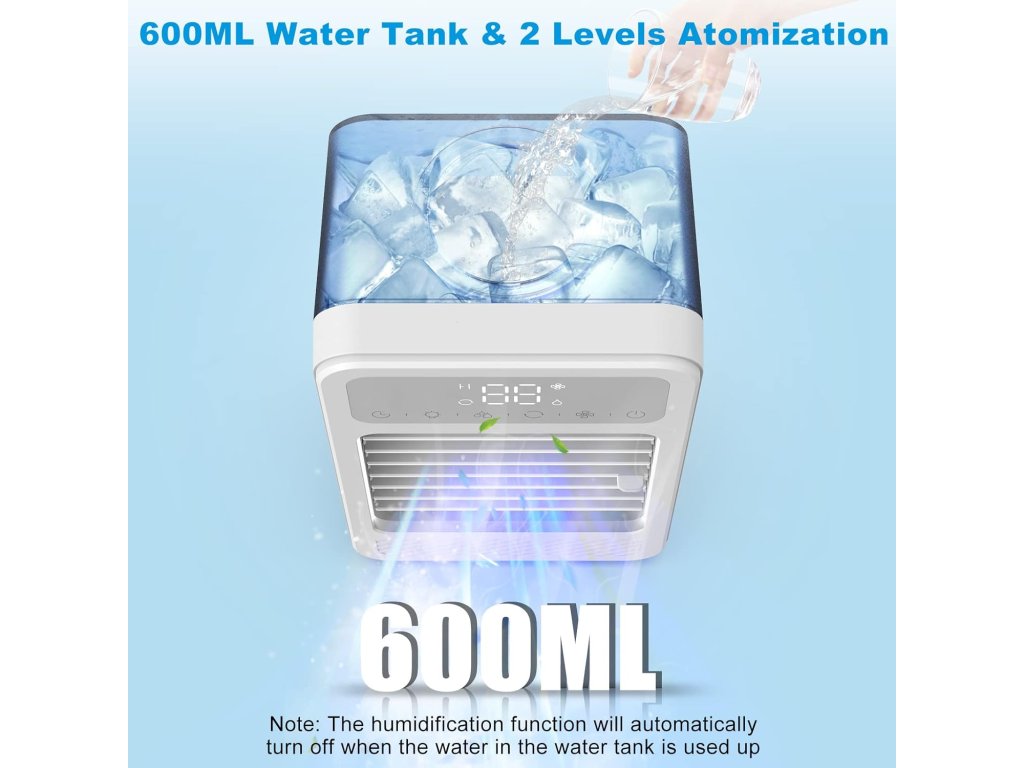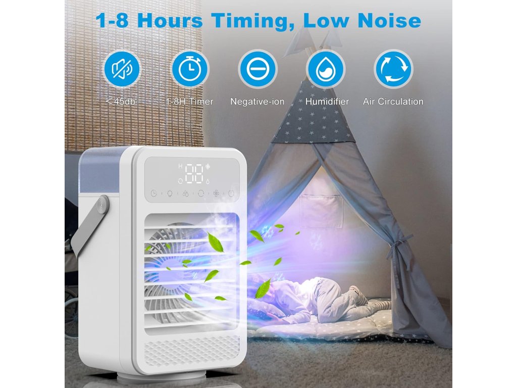 Mini přenosný ochlazovač vzduchu s časovačem a světlem