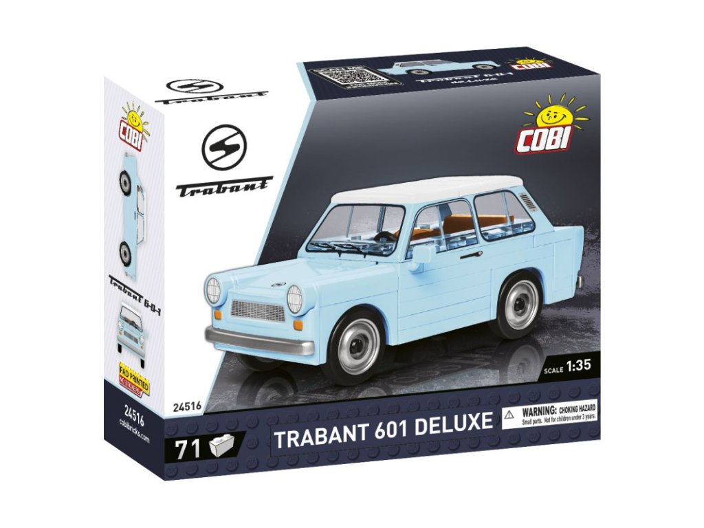 Stavebnice modelu Trabant 601 Deluxe, měřítko 1:35, 71 dílků. Sestavte si legendární automobil z NDR.