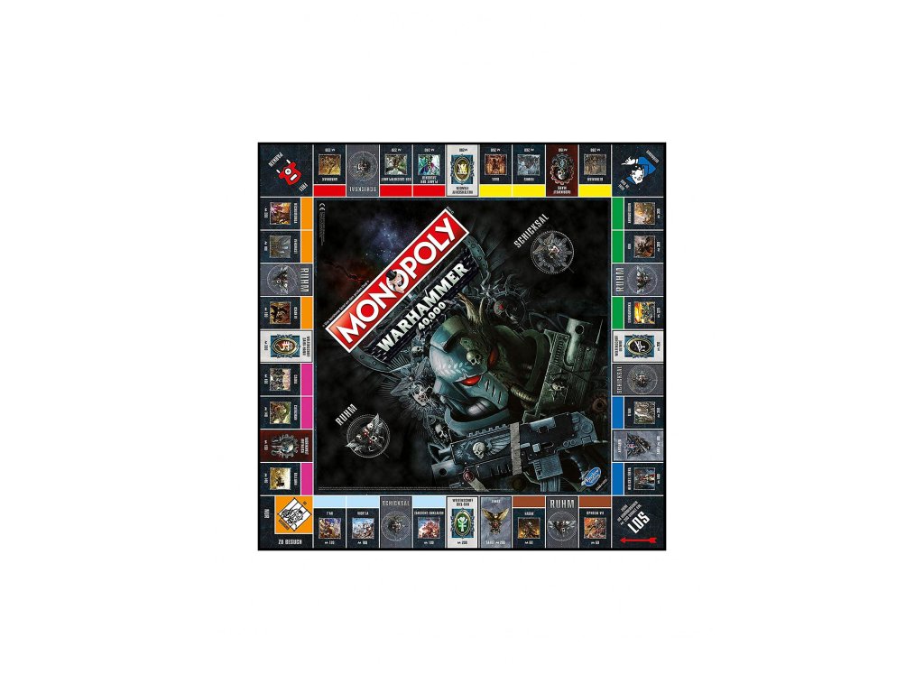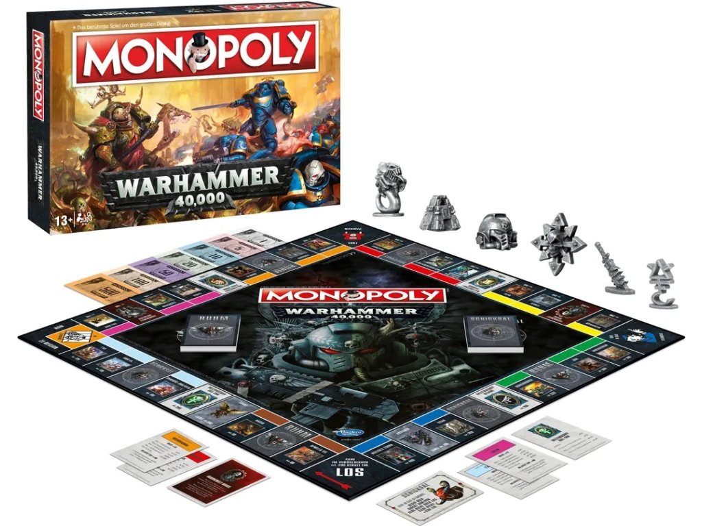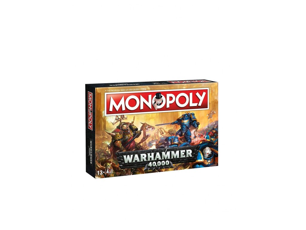 Monopoly Warhammer 40K je desková hra, která kombinuje klasické Monopoly s temným fantasy světem Warhammer 40K. Hra je v německém jazyce, určena pro 2-6 hráčů od 13 let s herní dobou od 1 hodiny. Obsahuje 6 sběratelských figurek (např. helma Space Marine, Necron Monolith), hrací desku, karty Vlastnických práv, Slávy a Osudu, Monopoly herní peníze, domy, hotely a kostky. Produkt je vyroben v Německu.