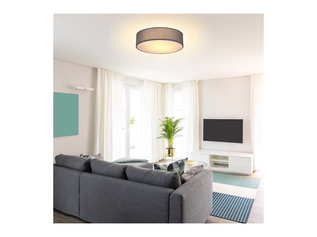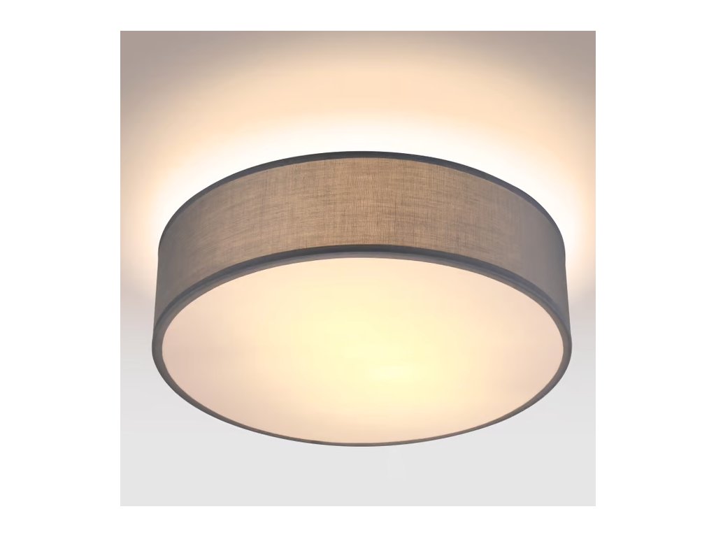 MONZANA je dekorativní a moderní stropní svítidlo s látkovým stínidlem v šedé barvě a průměrem 38 cm. Lampa je určena pro dvě žárovky s objímkou E27 (max. 40 W nejsou součástí balení). Díky látkovému provedení a spodnímu krytu vytváří příjemné neoslňující světlo s rovnoměrným rozložením. Je vhodná do obývacích pokojů ložnic chodeb a kanceláří.