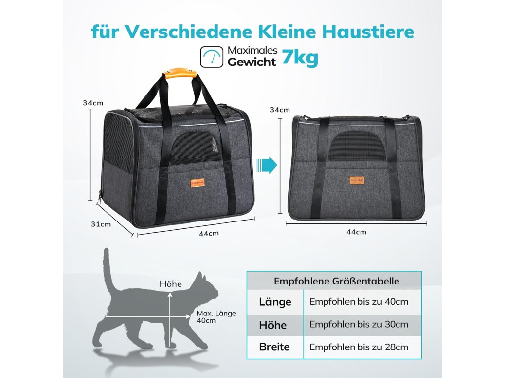Široké možnosti využití: Tašku můžete nosit jako tašku přes rameno díky polstrovaným rukojetím a nastavitelnému popruhu, nebo ji jednoduše přenášet za horní ucho. Je perfektní pro návštěvy veterináře, cestování autem, vlakem, letadlem a mnoho dalšího.