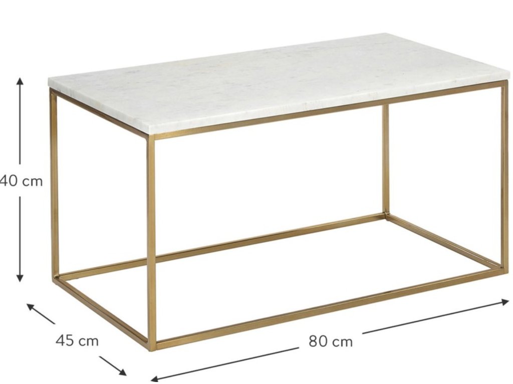 Rám je vyroben z kovu s povrchovou úpravou ve zlatých matných odstínech, které dodávají stolku sofistikovaný vzhled.