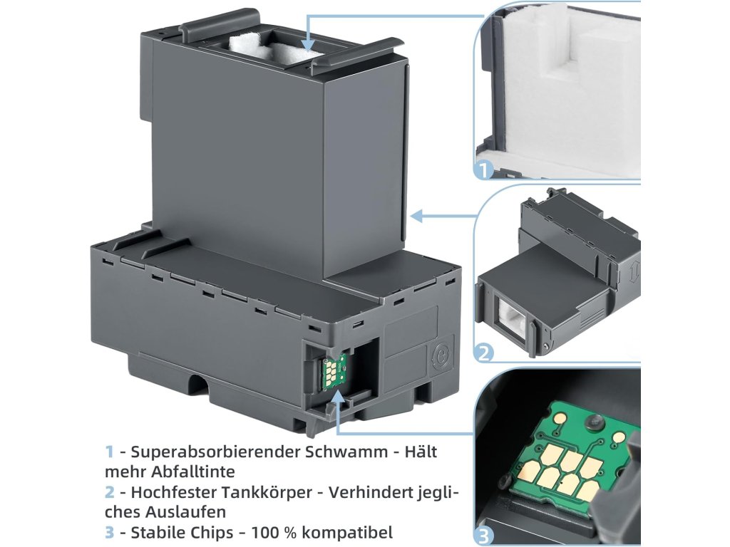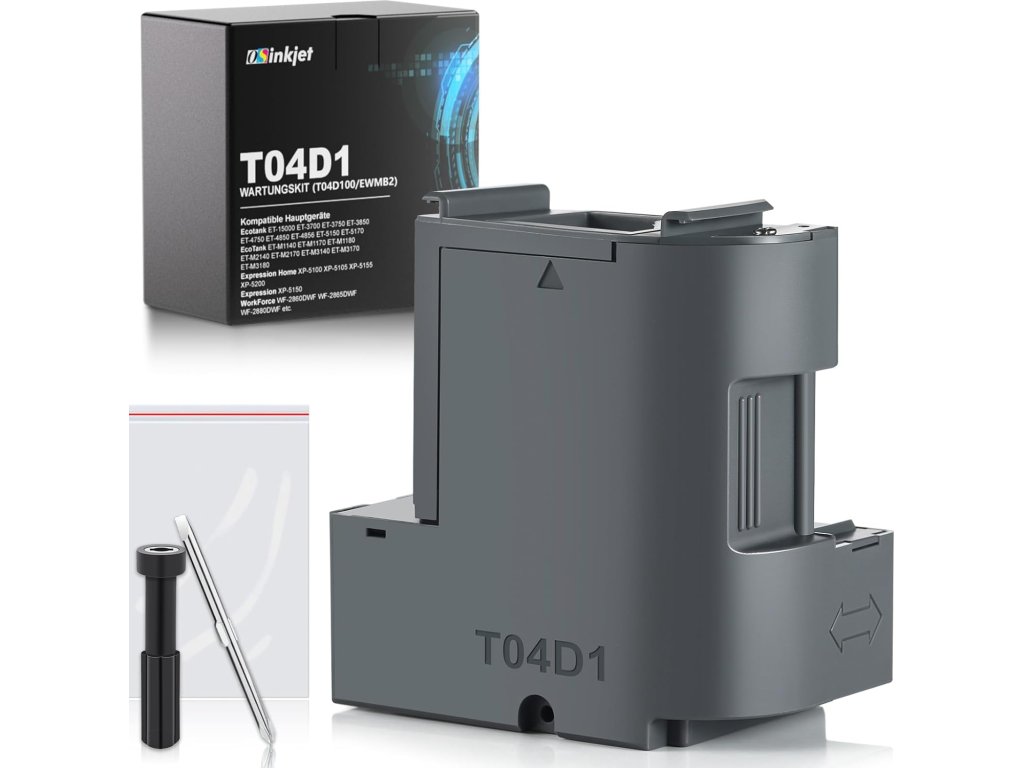 Nádobka na odpadní inkoust Osinkjet T04D1/T04D100 (C13T04D100) je kompatibilní s vybranými tiskárnami Epson EcoTank a Expression Home & WorkForce.