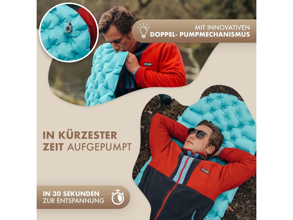 Díky zpětnému ventilu se karimatka nafoukne za pár vteřin pomocí dechu, aniž byste potřebovali jakékoli další příslušenství, jako je pumpa.