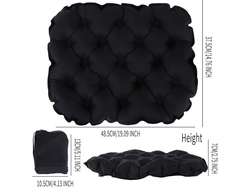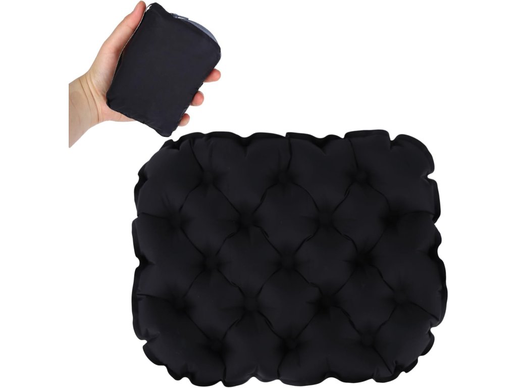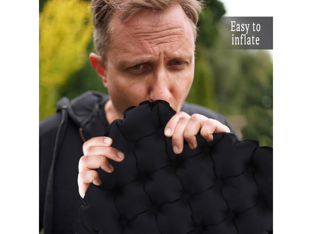 Podložka se po vyfouknutí složí do kompaktní velikosti pouhých 8 x 11 cm a snadno se vejde do batohu nebo příruční tašky. Je vyrobena z odolného nylonu s TPU povlakem, který je voděodolný a vydrží náročné podmínky. Můžete ji použít při kempování, na lavičkách nebo na pikniku.