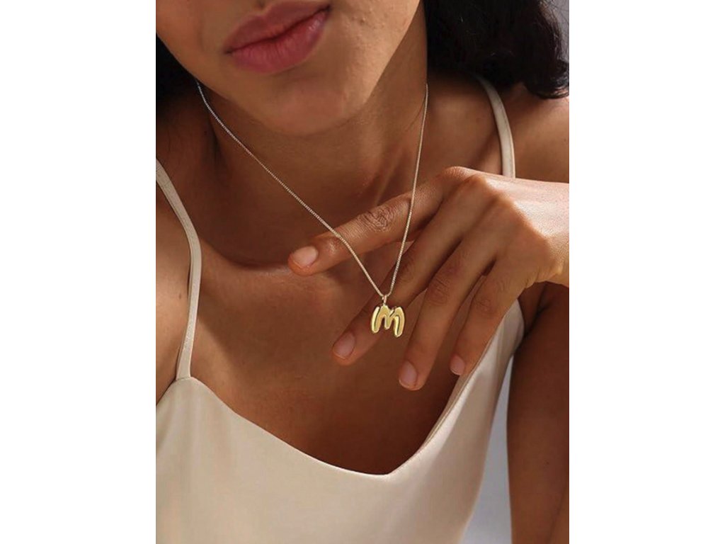 Tento elegantní náhrdelník se hodí pro každodenní nošení. Má jemný řetízek s přívěskem ve tvaru písmene M s kulatým, bublinkovým designem. Je to skvělý doplněk, který dodá vašemu outfitu osobitý nádech. Hodí se jako dárek pro přítelkyni, sestru nebo matku.