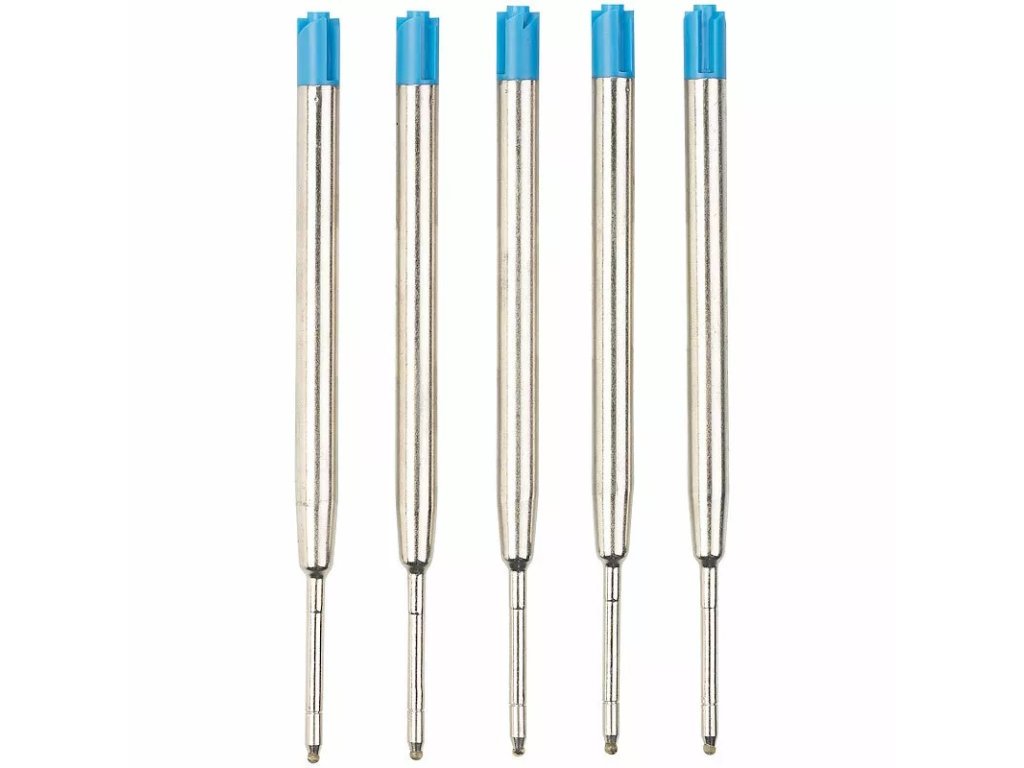 Tato sada obsahuje 10 kusů modrých náplní do kuličkových per značky PEARL. Jsou univerzálně kompatibilní s pery, která používají náplně s označením síla B.