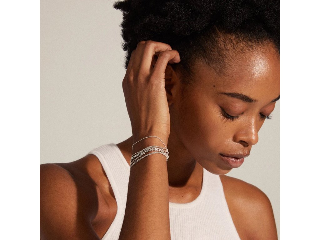 Tento stříbrný náramek od značky Pilgrim je stylový a moderní doplněk, který se hodí pro každou příležitost. Náramek je složen z různých typů řetízků (box, ball a cable), což mu dodává jedinečný a trendový vzhled. Je skvělým doplňkem, ať už se chystáte na večírek, nebo jen na každodenní nošení.