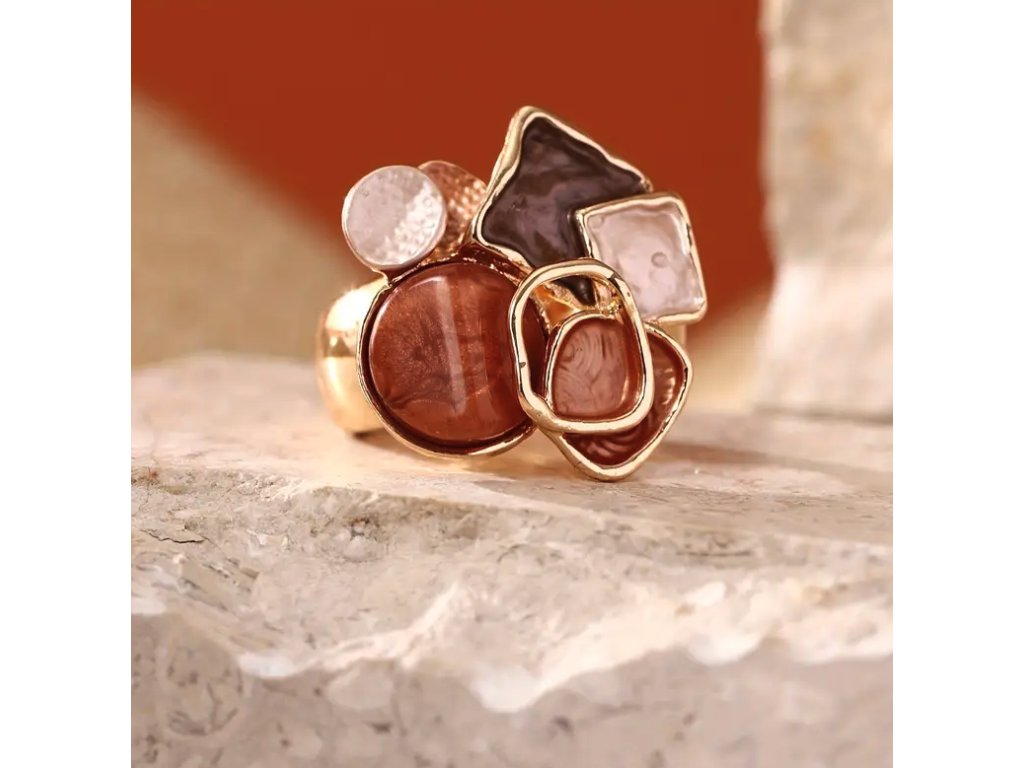 Nastavitelný prsten s geometrickým tvarem a barevným emailem