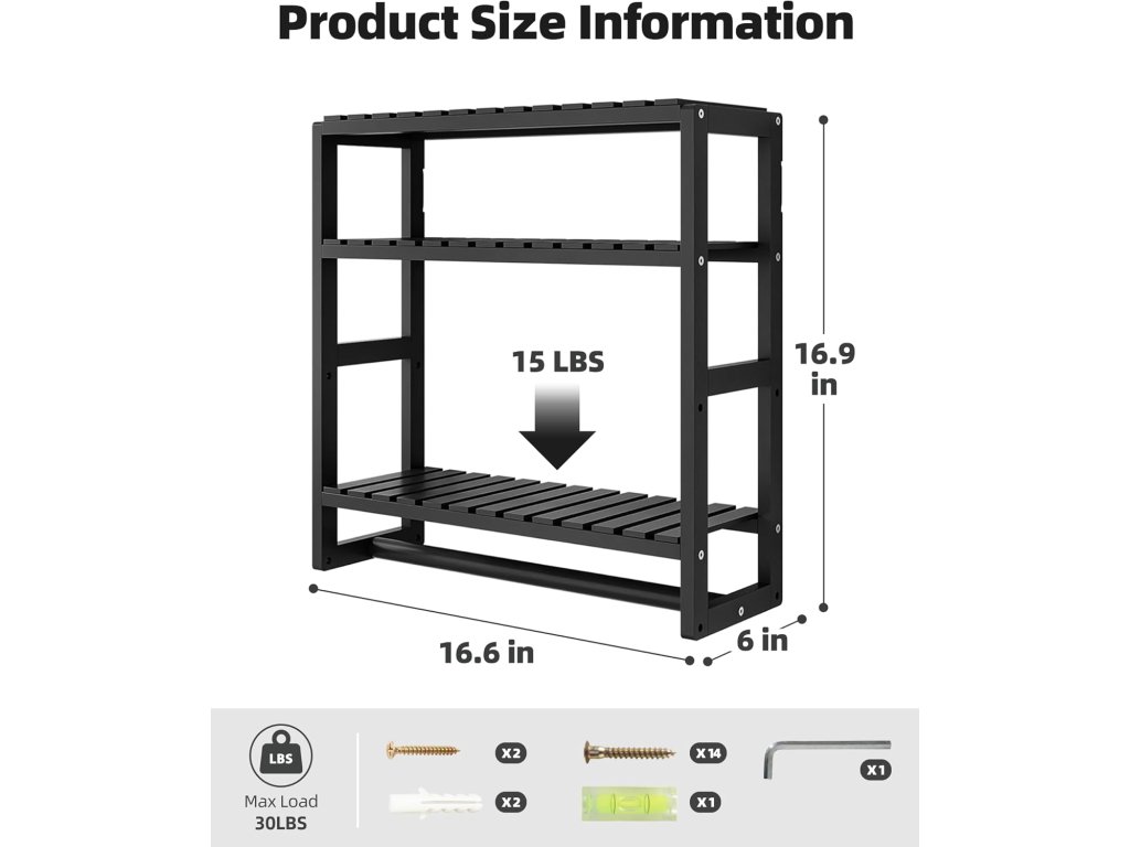 Tato nástěnná koupelnová police je navržena tak, aby efektivně vyřešila problém s nepořádkem ve vaší koupelně. Její prostorově úsporný design maximalizuje potenciál vaší koupelny a poskytuje dostatek úložného prostoru pro ručníky, toaletní papír a další nezbytnosti, přičemž vše zůstane uspořádané a na dosah.