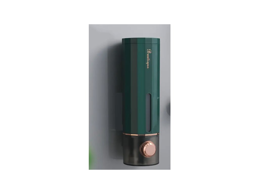 Jedná se o nástěnný dávkovač na mýdlo v zelené barvě, který je vhodný pro tekuté mýdlo, šampon nebo sprchový gel.