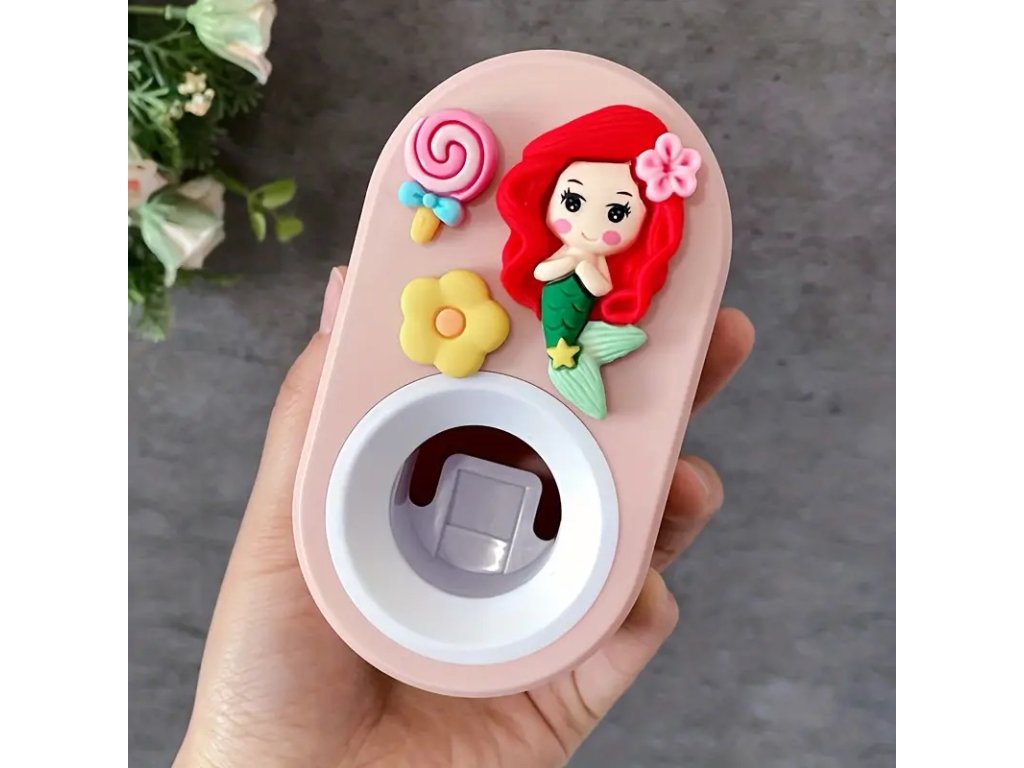Tento produkt je nástěnný držák a dávkovač zubní pasty s motivem mořské panny v růžové barvě. Slouží k efektivnímu vytlačování pasty z tuby a je navržen jako praktický a dekorativní doplněk do koupelny.