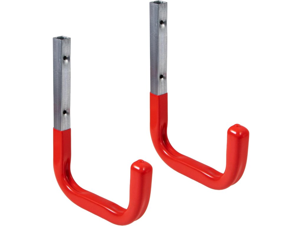 Nástěnný háček GedoTec je robustní ocelový háček s červeným gumovým povlakem a čtvercovým profilem 12x12 mm. Nabízí nosnost až 50 kg a je ideální pro uskladnění v garážích, kůlnách, sklepech a skladech. Balení obsahuje 2 kusy pozinkovaných masivních ocelových háčků o rozměrech 150 x 210 mm.