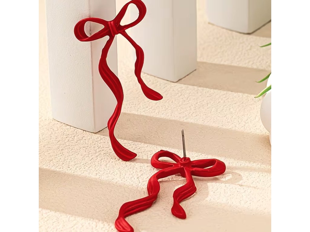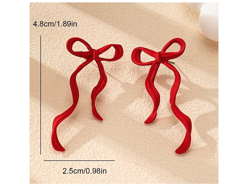 Set obsahuje jeden pár náušnic v nepřehlédnutelném designu červených mašlí, které kombinují retro styl s moderními prvky. Hlavní část náušnic je vyrobena z lehké hliníkové slitiny, což zajišťuje komfortní nošení po celý den bez nadměrného zatěžování ušních lalůčků. Povrchová úprava v sytě červené barvě dodává doplňku výrazný vzhled, který oživí jakýkoli outfit.