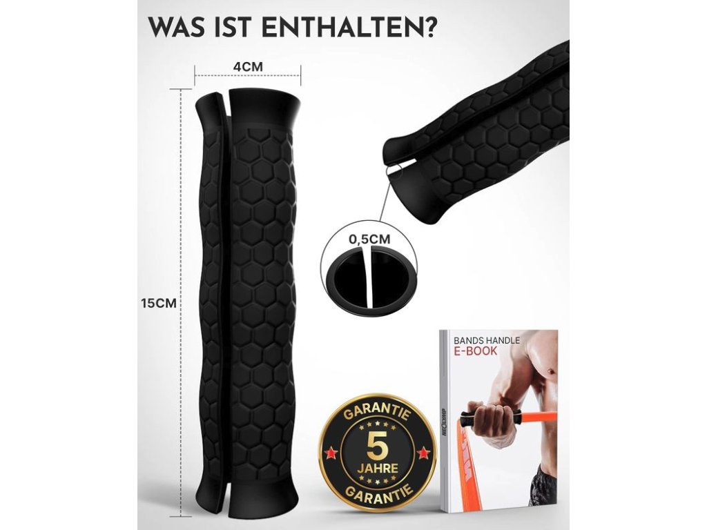 Tato madla jsou vyrobena z kombinace robustního nylonu a vysoce odolného termoplastického kaučuku (TPR), což zajišťuje jejich stabilitu a odolnost proti opotřebení. Jsou plně kompatibilní s různými typy odporových gum, latexových pásů i textilních fitness gum. S délkou 15 cm a průměrem 4 cm jsou navržena tak, aby vyhovovala mužům i ženám. Jsou vhodná pro širokou škálu aktivit, od silového tréninku a budování svalové hmoty až po protahování a rehabilitační cvičení.