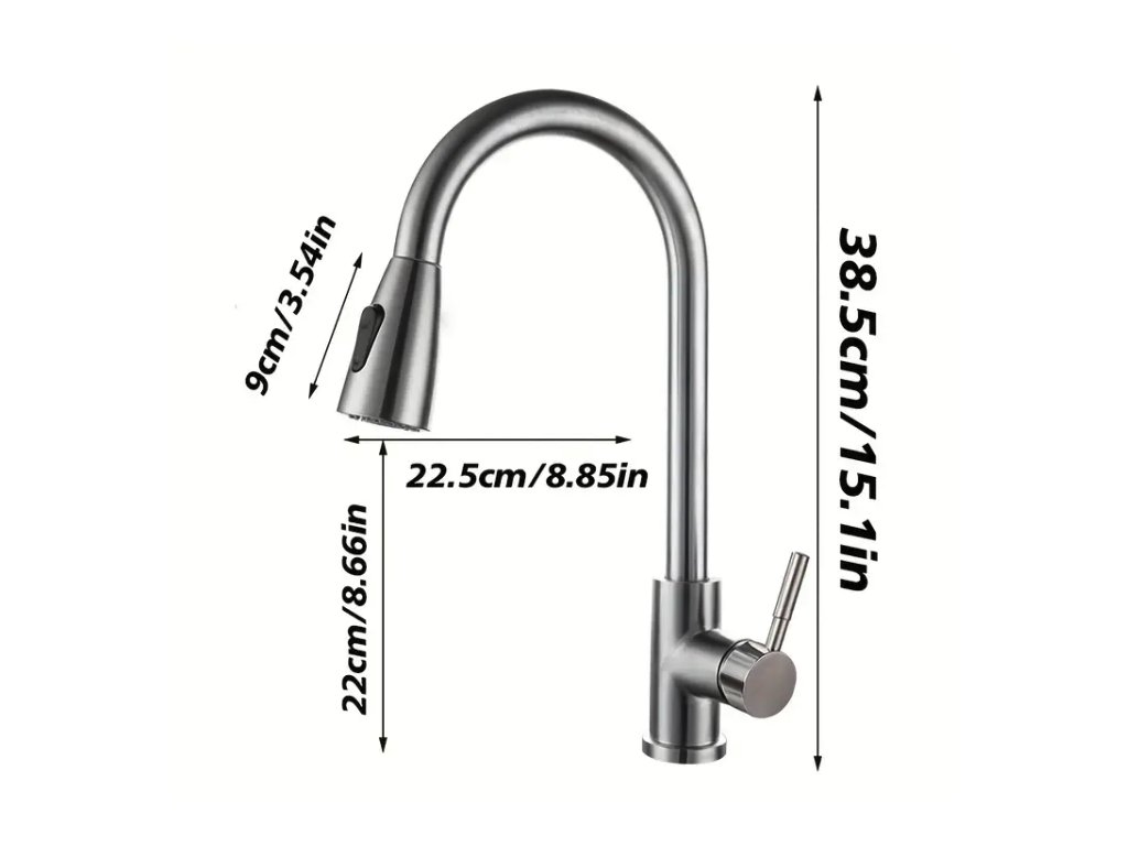 Tato baterie je skvělým doplňkem do každé moderní kuchyně. Je vyrobena z leštěné nerezové oceli a instaluje se na dřez. Vytahovací sprška, která se otáčí o 360°, usnadňuje mytí nádobí i dřezu. Můžete si vybrat ze dvou režimů průtoku vody, což zajišťuje pohodlí při používání. Baterie je ve stříbrné barvě.