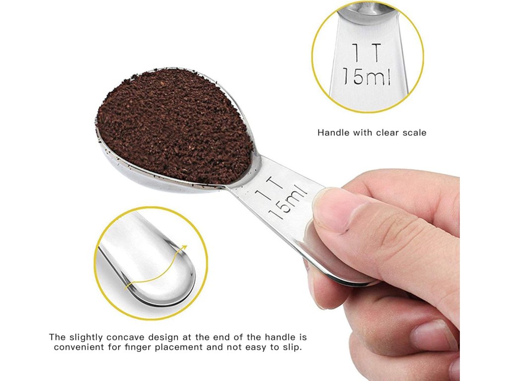 Praktická sada 3 nerezových kávových lžiček s objemem 15 ml a krátkou rukojetí.