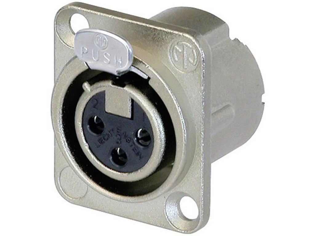 Neutrik NC3FD-LX, XLR přírubová zásuvka, 3 póly, stříbrná, rovná. Balení 10 ks.