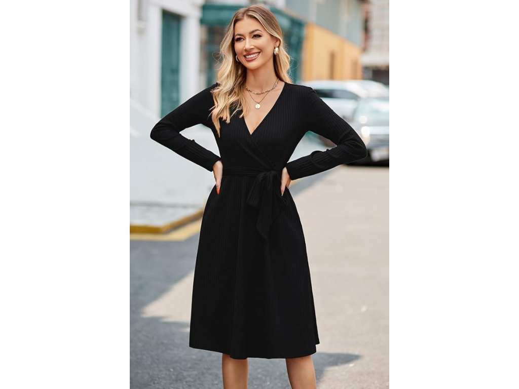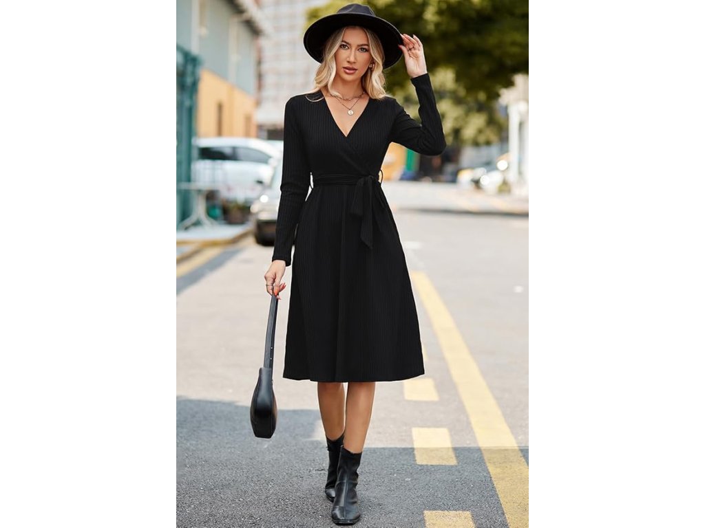 Délka přibližně ke kolenům a černá barva dodávají šatům nadčasový vzhled. Skvěle se kombinují s kabátem, kozačkami nebo kotníkovou obuví, takže se hodí jak na běžné nošení, tak i na práci, společenské události nebo zimní výlety.