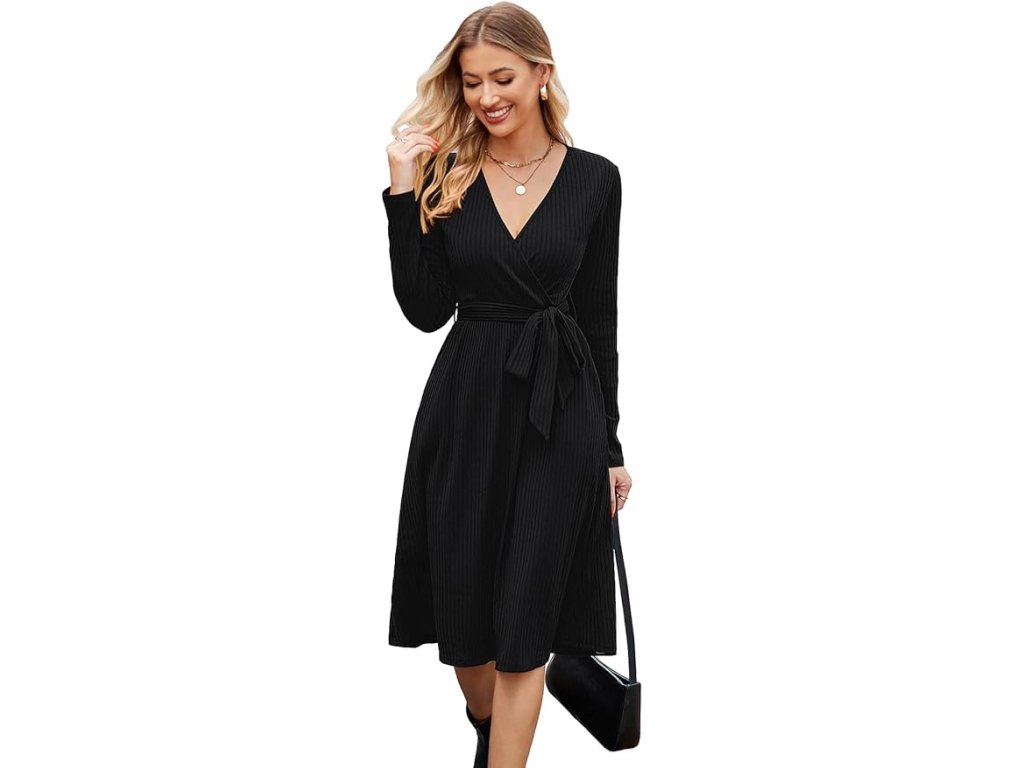 Newshows pletené šaty s výstřihem do V – černé, vel. L