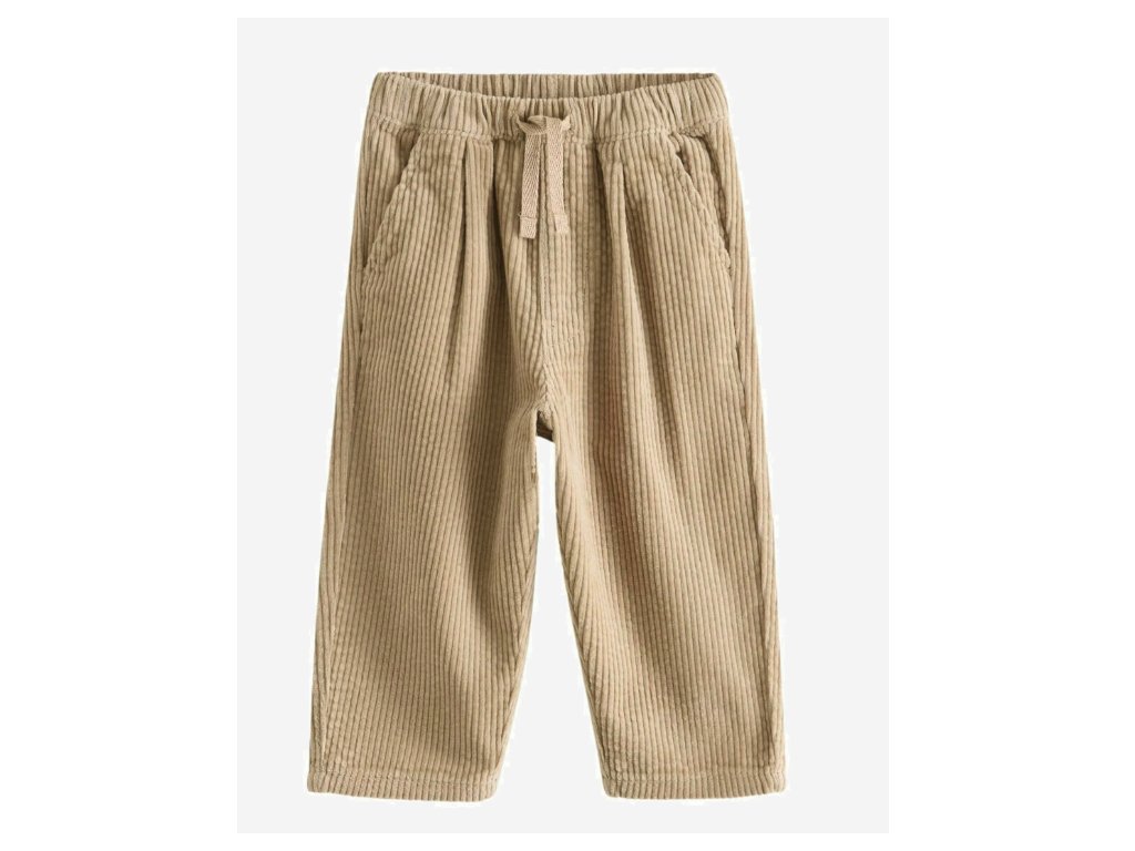 Dětské manšestrové kalhoty od značky Next jsou ideální volbou pro každodenní aktivity i neformální společenské události. Kalhoty jsou vyrobeny z čisté 100% bavlny, která je zpracována do jemného, ale odolného manšestru. Střih Regular Fit v kombinaci s rovnými nohavicemi v délce po kotníky poskytuje dítěti dostatek prostoru a volnost pohybu. Praktickým detailem je elastický pas, který usnadňuje oblékání a přizpůsobí se postavě bez nepříjemného tlačení. Kalhoty mají klasickou výšku pasu a jsou vybaveny funkčními bočními kapsami. Jednoduchý jednobarevný vzor v odstínu stone se velmi dobře kombinuje s dalším oblečením, čímž vytváří vkusný a čistý vzhled.