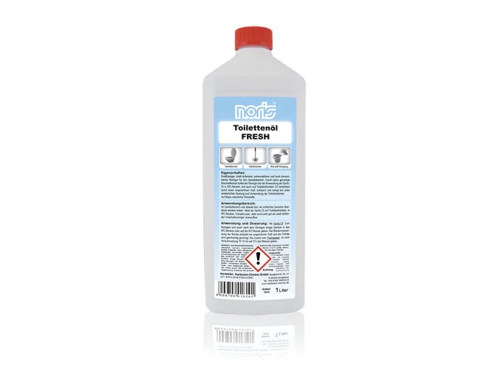 Toaletní olej Noris FRESH (1 litr) je koncentrovaný, silně parfémovaný čisticí prostředek, který vytváří svěží a dlouhotrvající vůni v koupelnách. Lze jej použít i jako sprej pro intenzivnější účinek.