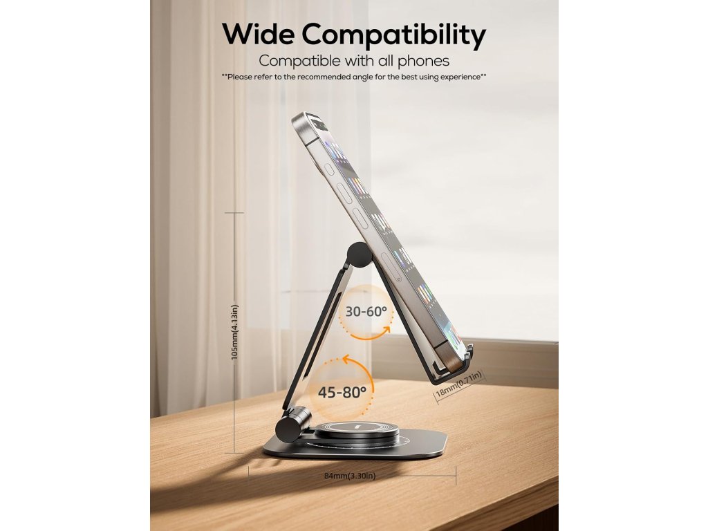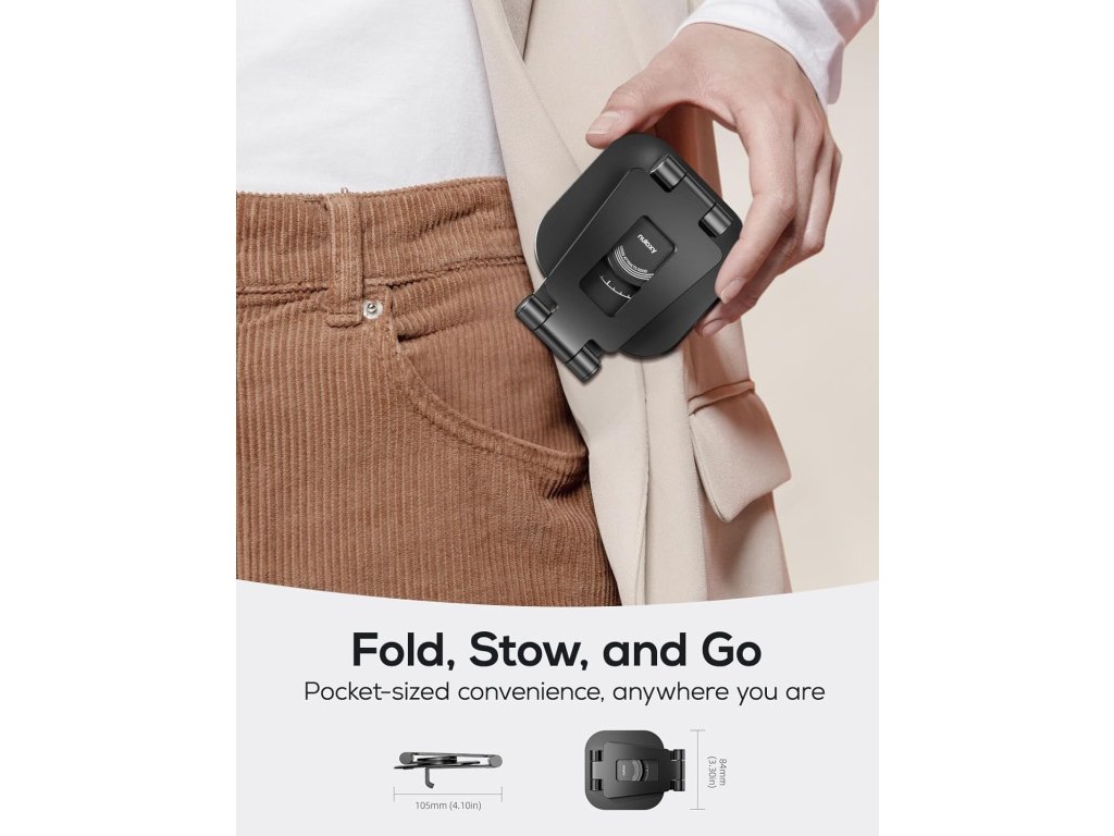 Držák nabízí možnost nastavení ideálního pozorovacího úhlu v horizontální i vertikální poloze, což pomáhá předcházet únavě krční páteře při dlouhém sledování videí, čtení nebo videohovorech. Díky promyšlenému designu s výřezem pro kabel můžete své zařízení pohodlně nabíjet i během používání. Celý stojan je plně skládací, takže se v zavřeném stavu snadno vejde do kapsy nebo batohu, což z něj dělá ideálního společníka na cesty či do kanceláře.