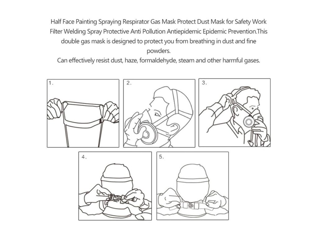 - Vysoká účinnost ochrany: Maska zajišťuje účinné čištění vzduchu, chrání vás před prachem, oparem, formaldehydem, párami a dalšími škodlivými plyny.