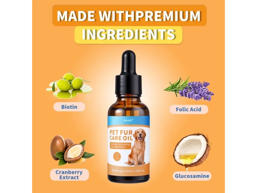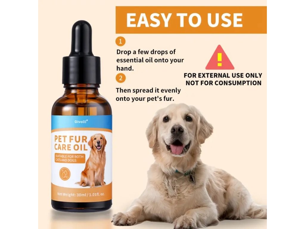 Olej pro péči o srst psů koček přírodní oleje