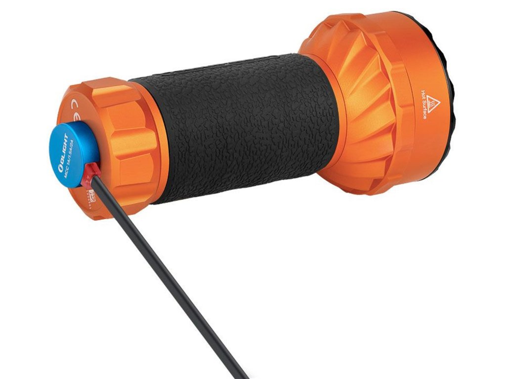Napájena je přizpůsobenou lithiovou baterií 24Wh 32650, která zajišťuje dlouhou výdrž a je kompatibilní s magnetickým nabíjecím kabelem Olight MCC3. Tělo svítilny je potaženo 270° silikonem pro pohodlnější a stabilnější úchop. Praktické skryté poutko usnadňuje přenášení a každodenní použití. Svítilna je vodotěsná dle IPX8 a odolná proti pádu z výšky 1,5 metru.