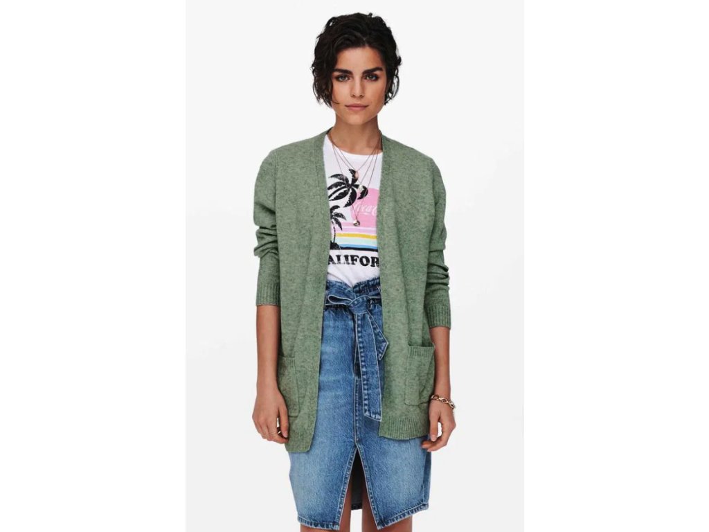 Krátký popis Dámský pletený kardigan od značky ONLY v sytě zelené barvě představuje základní kousek šatníku vhodný pro celoroční nošení. Díky vyvážené směsi materiálů s vysokým podílem viskózy je svetr velmi příjemný na dotek a zajišťuje pohodlí při každodenních aktivitách.
