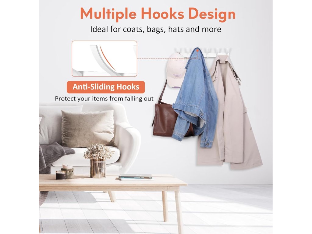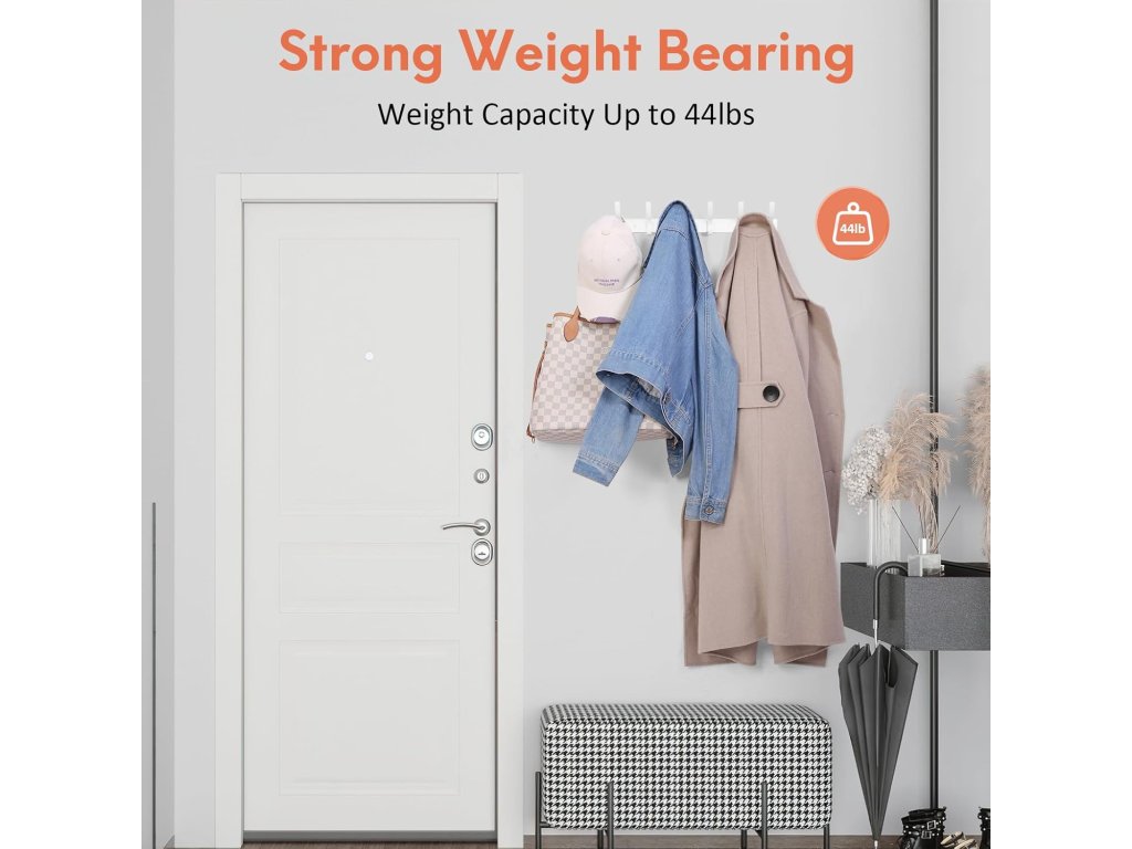 Sada obsahuje 2 věšáky po 12 háčcích, což umožňuje efektivní využití prostoru za dveřmi či na stěně. Věšáky jsou ideální pro zavěšení kabátů, klobouků, ručníků, batohů nebo šál, aniž by bylo narušeno uspořádání ostatních předmětů.