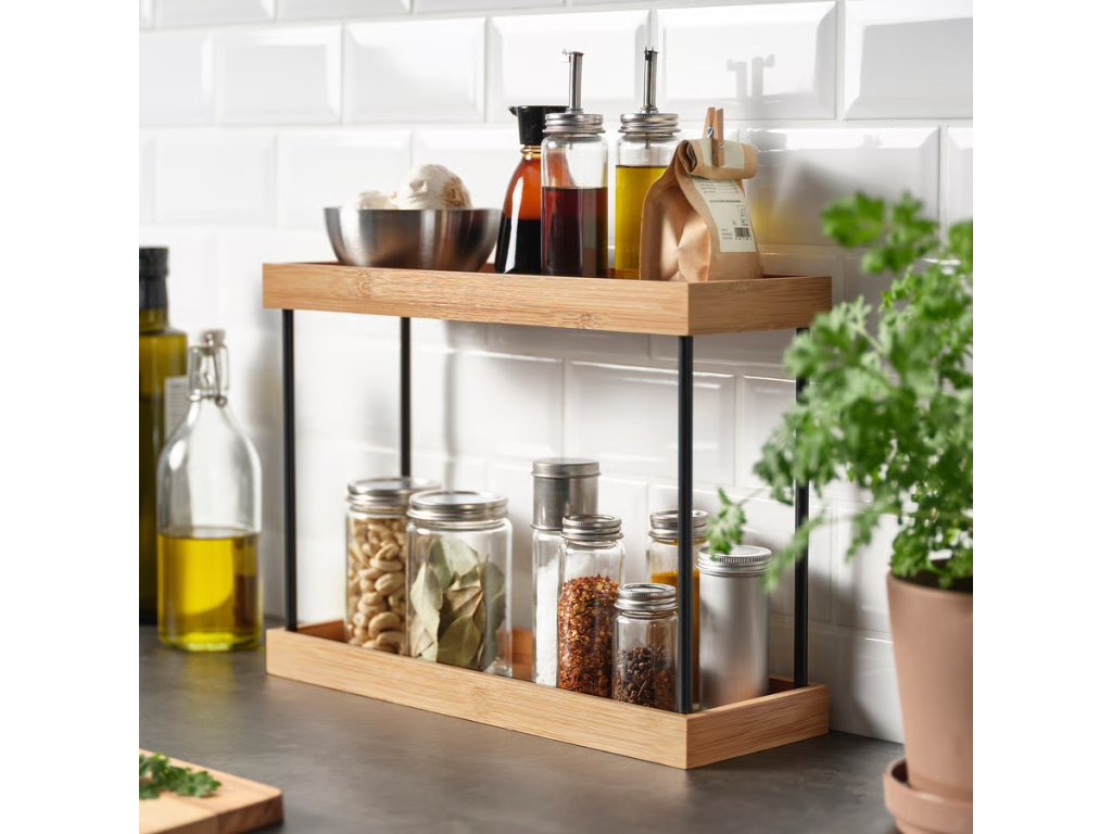 Organizér na kuchyňskou desku kov a bambus 38x13x28 cm