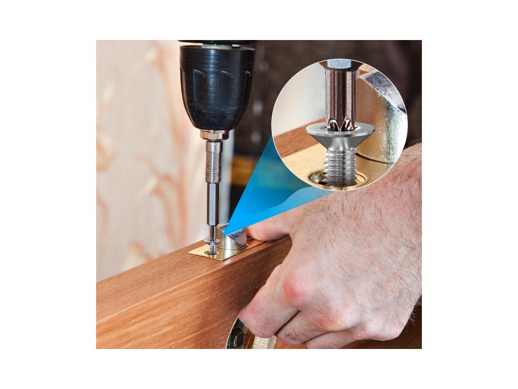 Zápustná hlava umožňuje šroub zcela zapustit do materiálu, čímž vzniká hladký a estetický povrch bez vyčnívajících prvků. Přesně frézovaný závit je hluboký a čistý, bez otřepů, což zaručuje hladké šroubování a pevné spojení, které se samovolně neuvolňuje. Tyto spojovací prvky naleznou uplatnění v domácnostech, kancelářích, při montáži strojů, v lodním průmyslu nebo při běžných opravách v dílně a garáži.