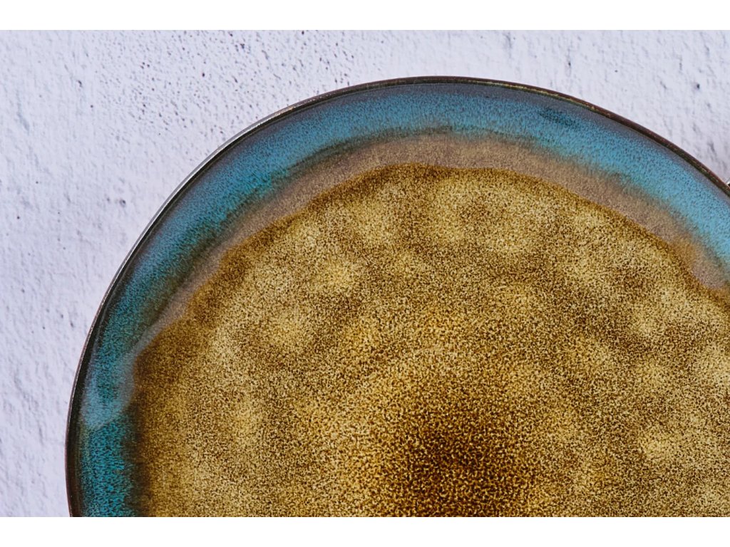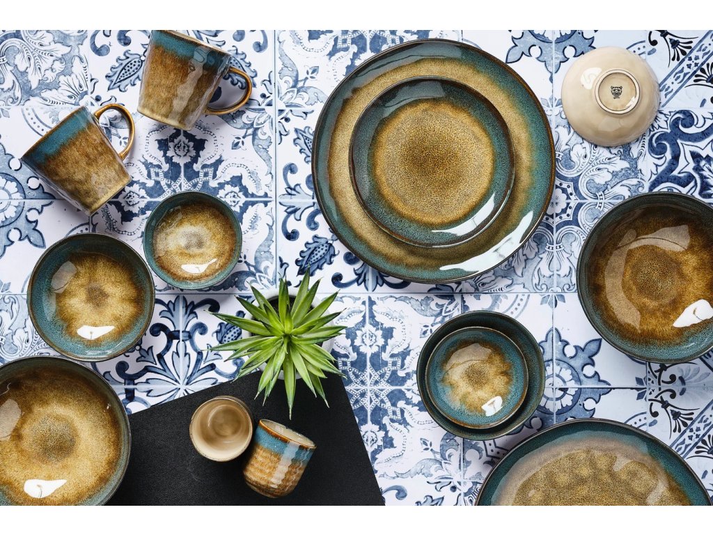 Sada 6 kusů OSTRŮVKOVÝCH talířů o průměru 28 cm vyrobených z kameniny s reaktivní glazurou. Talíře v barvách khaki a modré odrážejí inspiraci Faerských ostrovů a vytvářejí atmosféru pevninou a mořem. Jejich asymetrický tvar s reliéfy je ideální pro efektní prezentaci pokrmů. Talíře jsou vhodné do myčky mikrovlnné trouby a trouby do 220 °C.