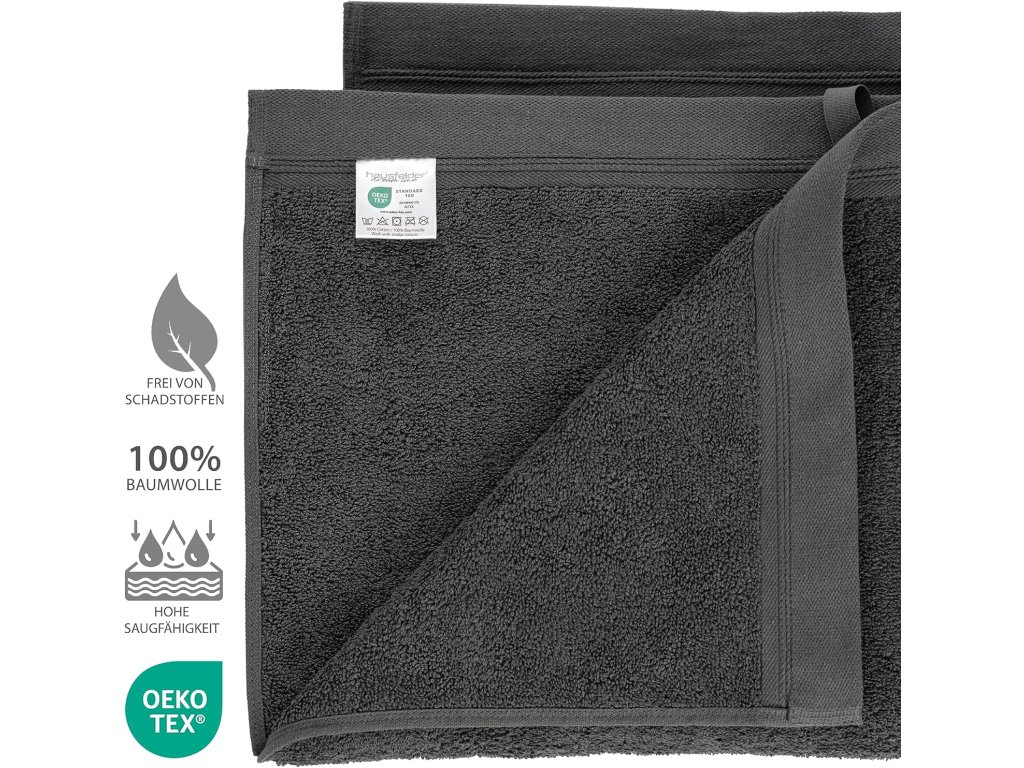 Sada 2 prémiových osušek o rozměrech 80x200 cm v antracitově černé barvě. Jsou vyrobeny ze 100% bavlny s gramáží 500 g/m² (froté kvalita), jsou měkké, savé a Oeko-TEX certifikované. Odolné, snadno se udržují a mají praktické poutko na zavěšení.