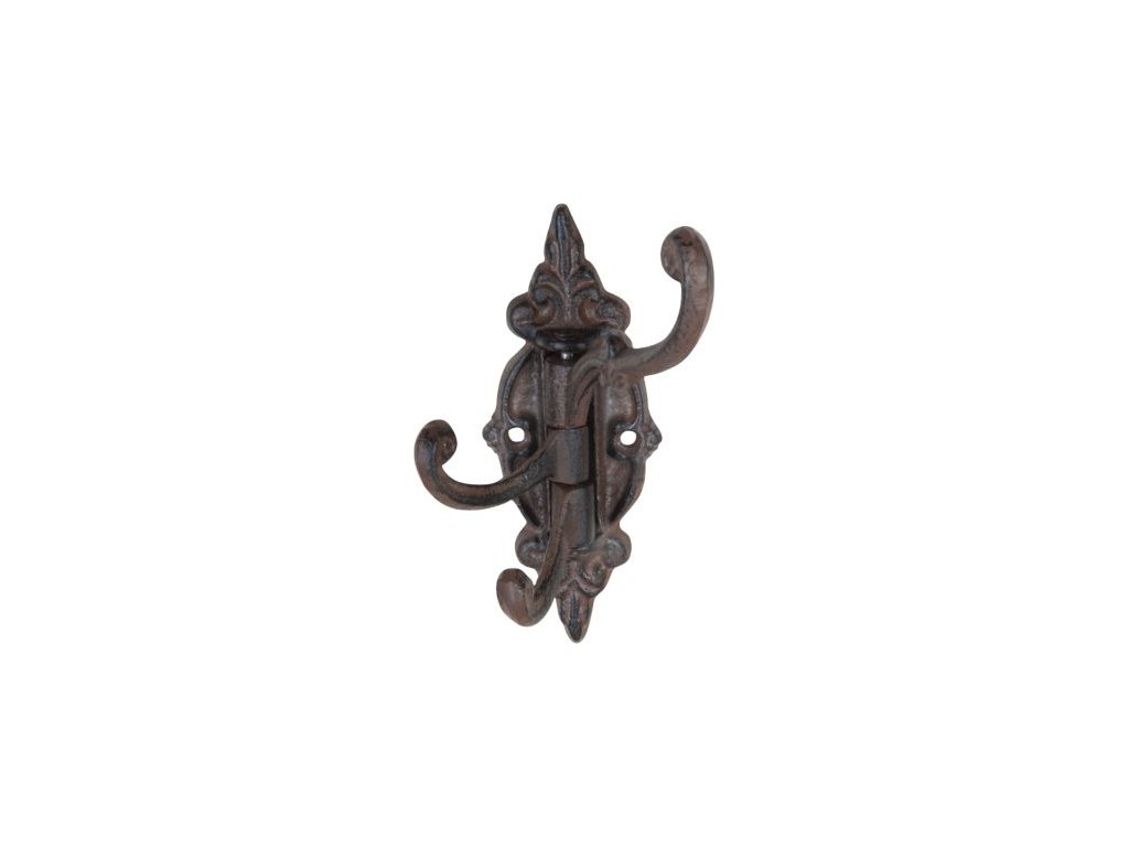 Otočný hák na dveře se 3 litinovými háčky hnědý