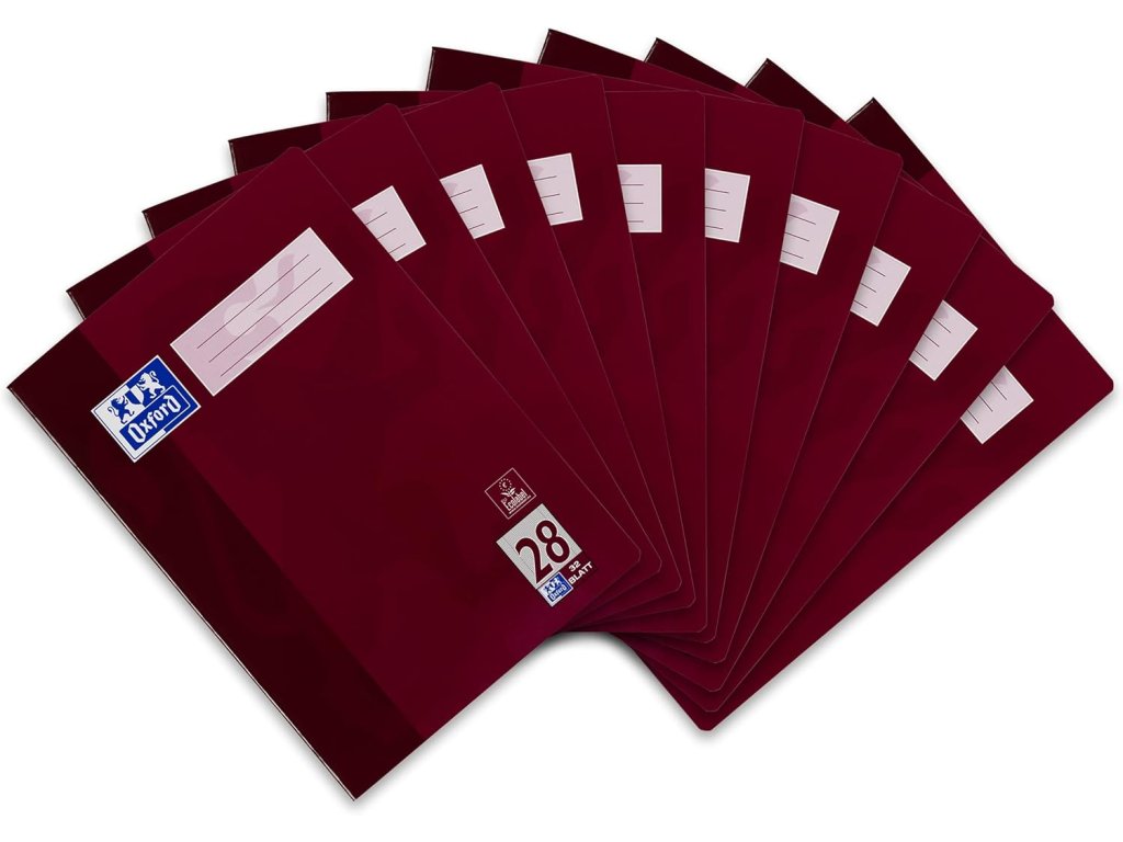Oxford A4 School sešit je balení 10 kusů sešitů formátu A4, každý s 32 stranami. Strany jsou z papíru Optic Paper s gramáží 90 g/m² a mají linkování 28 (čtvereček s dvojitým okrajem).