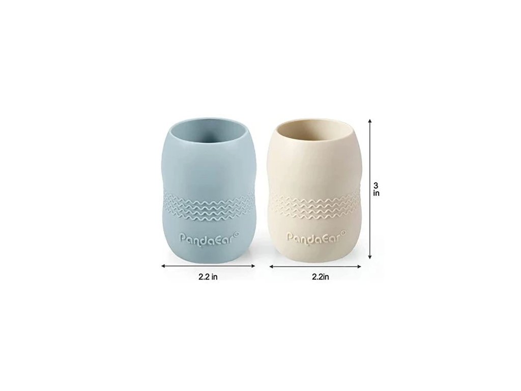 Sada na krmení pro batolata od značky PandaEar, která obsahuje dva talíře, dva hrníčky, dvě lžíce a dvě vidličky.