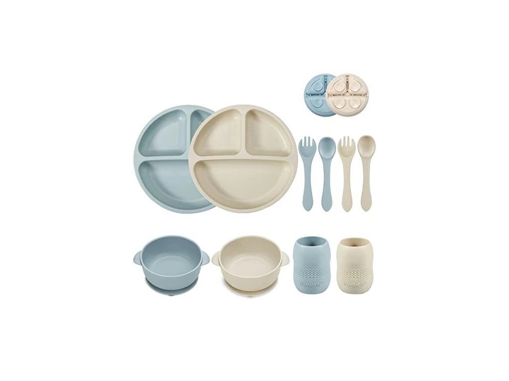 Tato sada je skvělá pro malé děti, které se učí jíst samy. Všechny části sady jsou vyrobeny z BPA free silikonu a jsou lehké a odolné proti rozbití.