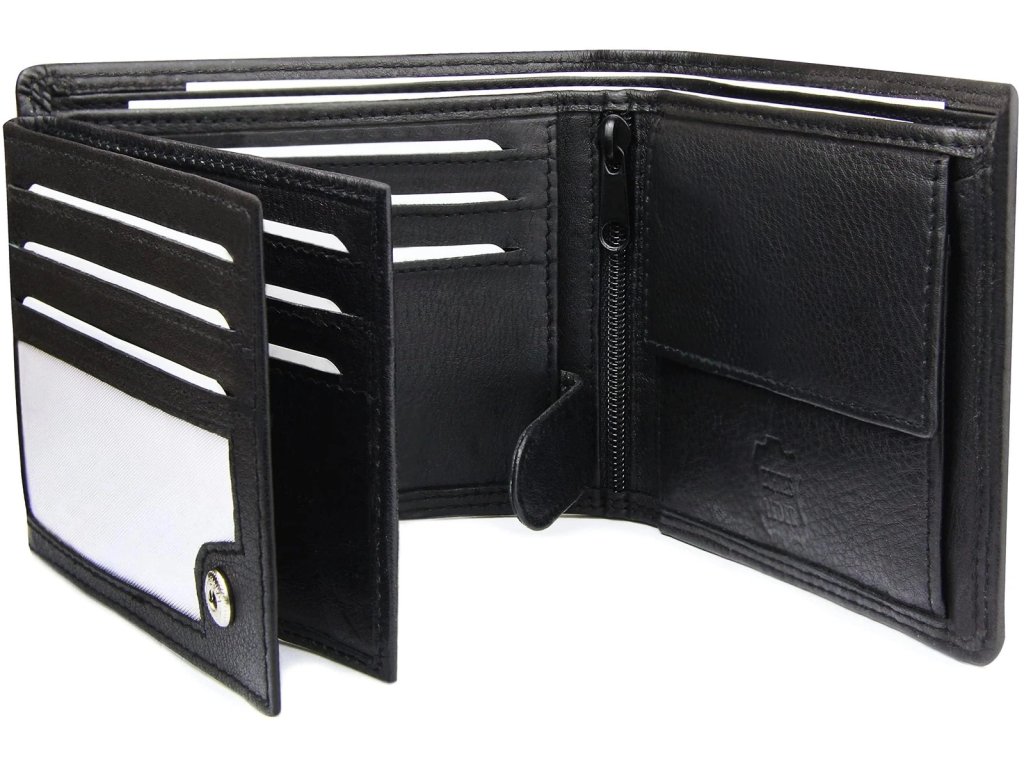 Pánská kožená peněženka nappa trifold s ochranou RFID černá