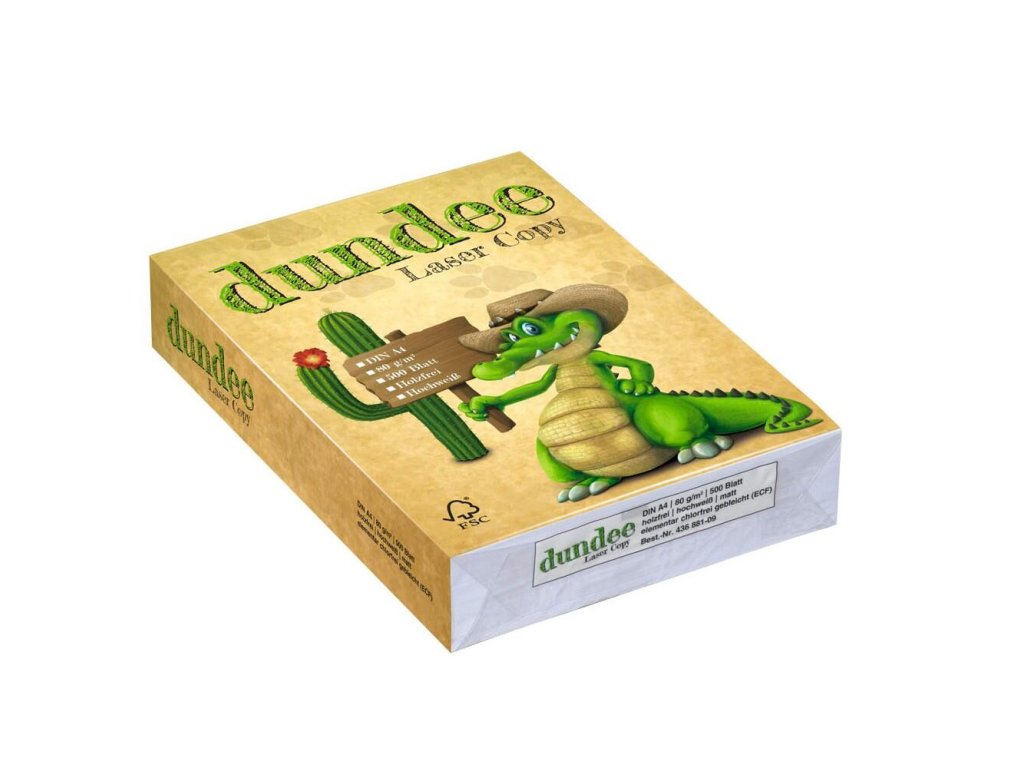 Dundee A4 kopírovací papír, 80 g/m², 500 listů. Pro laserový i inkoustový tisk, ECF bělení, dlouhá životnost pro archivaci, vhodný pro oboustranný tisk.