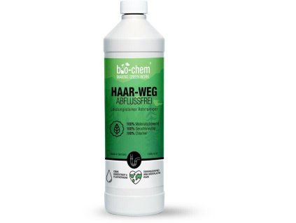 Bio chem Hair Away je silný koncentrovaný čistič odpadů o objemu 1L, který je určený k účinnému odstranění vlasů a dalších nečistot.