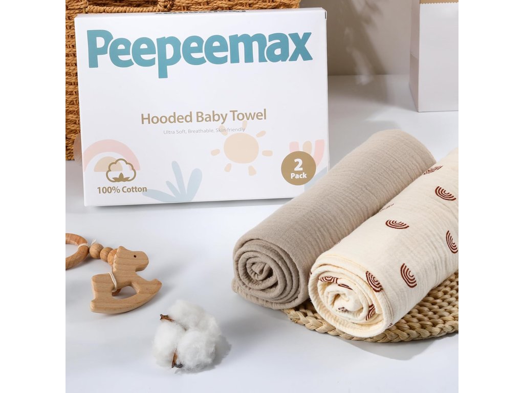 Peepeemax dětská mušelínová osuška s kapucí sada 2 kusů duha