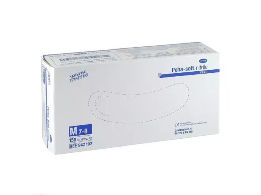 Peha-soft® nitrile fino jsou jednorázové vyšetřovací rukavice vyrobené z měkké, bezlatexové nitrilové pryže. Jsou nepudrované a mají vnitřní polymerovou vrstvu, která usnadňuje jejich nasazování. Hrubší textura na prstech zajišťuje optimální a jistý úchop. Tyto rukavice jsou vysoce elastické, odolné proti roztržení, skvěle padnou na ruce a poskytují vysokou hmatovou citlivost. Jsou vhodné pro použití na obou rukou. Velikost M, 150ks rukavic v jednom balení.