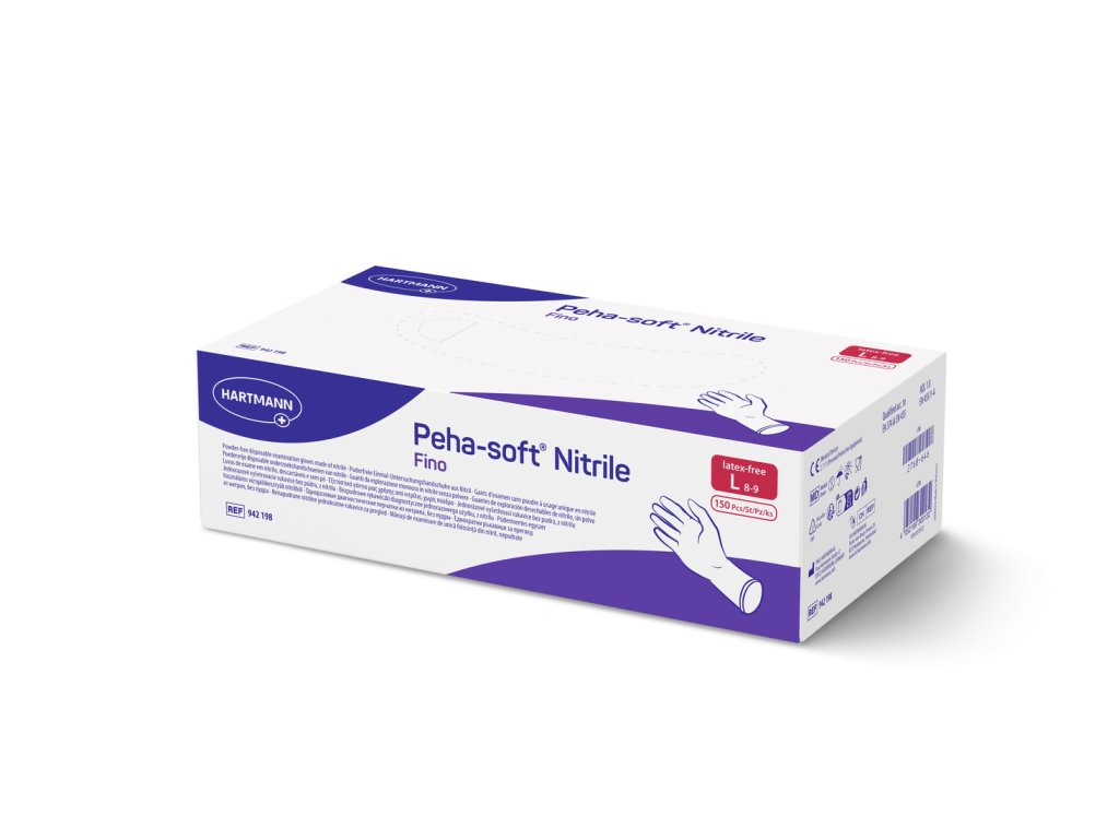 Peha-soft® nitrile fino jsou jednorázové vyšetřovací rukavice vyrobené z měkké, bezlatexové nitrilové pryže. Jsou nepudrované a mají vnitřní polymerovou vrstvu, která usnadňuje jejich nasazování. Hrubší textura na prstech zajišťuje optimální a jistý úchop. Tyto rukavice jsou vysoce elastické, odolné proti roztržení, skvěle padnou na ruce a poskytují vysokou hmatovou citlivost. Jsou vhodné pro použití na obou rukou. Velikost L, 150ks rukavic v jednom balení.