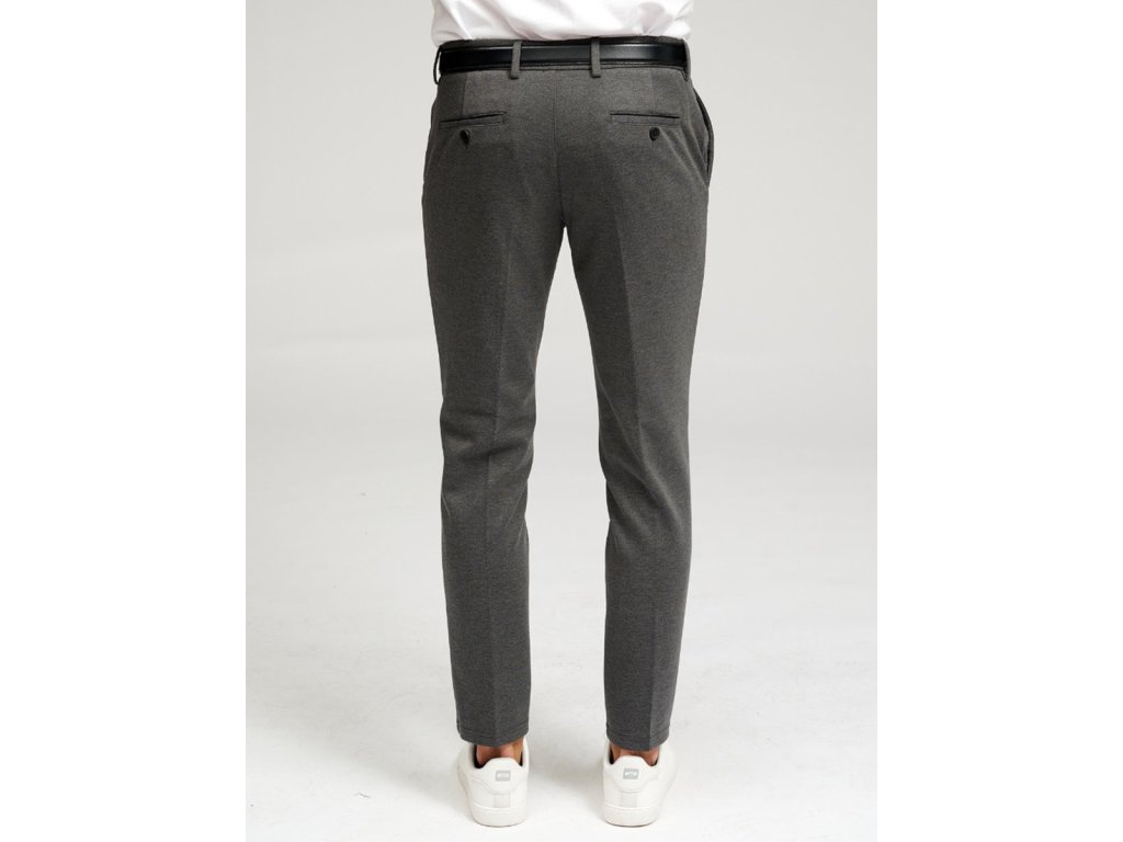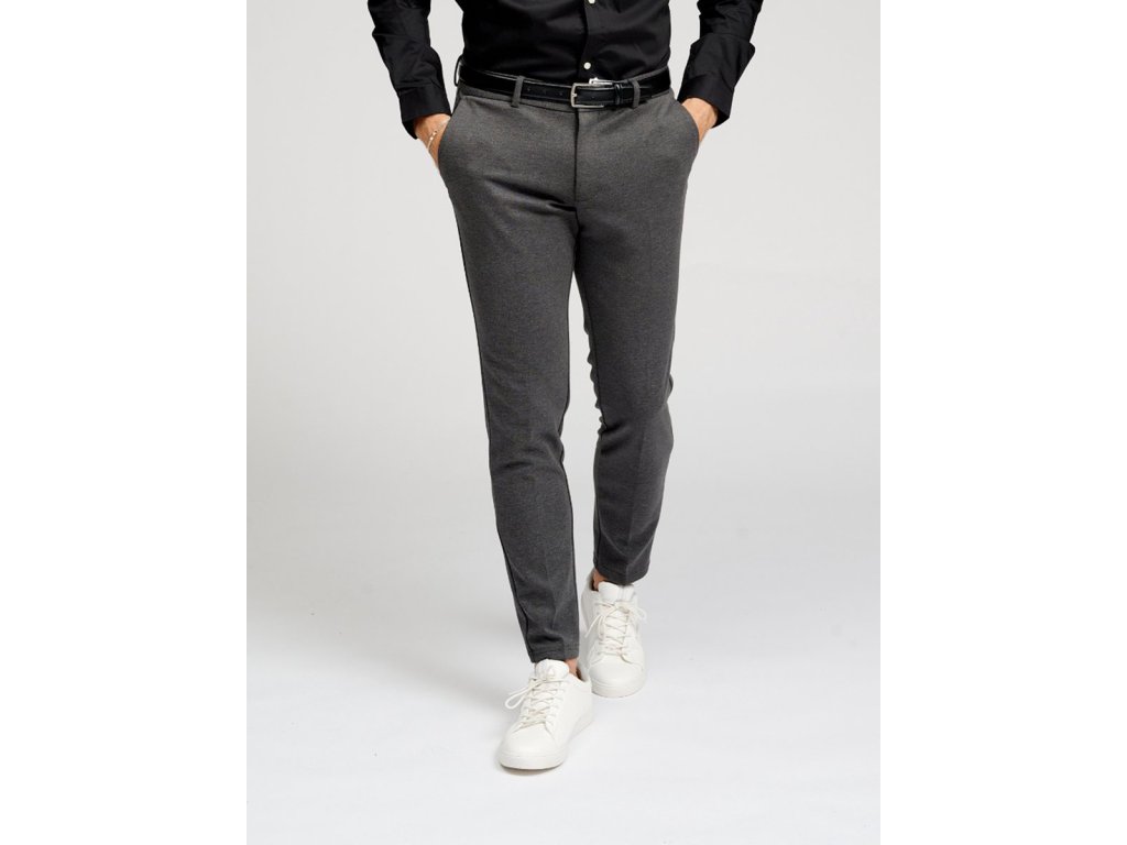 Tento model v tmavě šedé barvě má úzký střih Slim Fit a klasickou výšku pasu (Regular Waist). Součástí balení je také odpovídající pásek (ceintuur), který doplňuje celkový design. Kalhoty disponují praktickými postranními a zadními kapsami a zapínáním na zip. Jsou navrženy jako nadčasový základ šatníku, který lze snadno kombinovat s košilí i tričkem, a díky své odolnosti a nemačkavosti jsou vhodné pro každodenní používání.