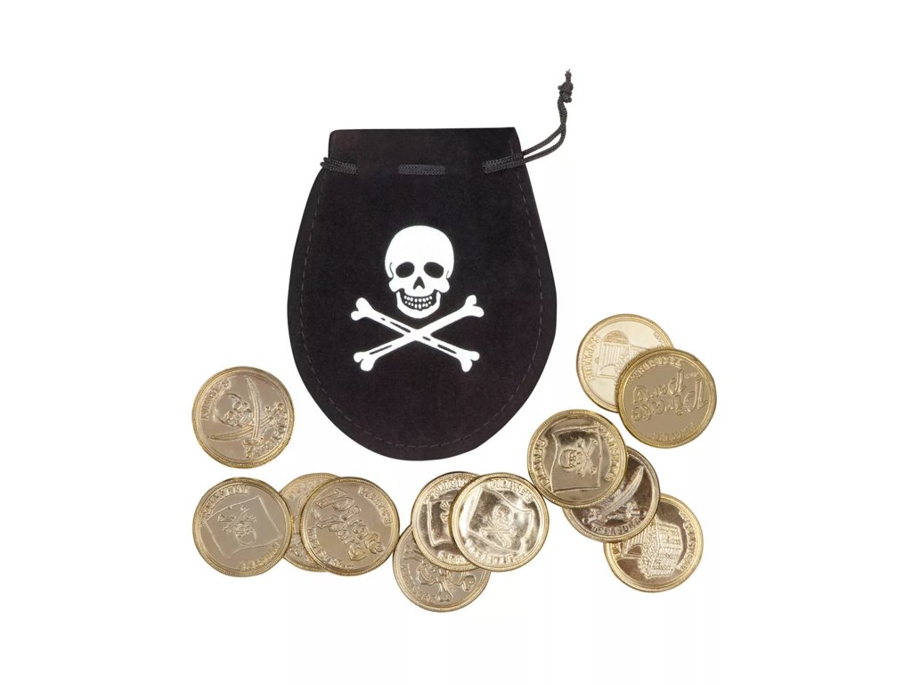 Součástí sady je látkový měšec v černé barvě s motivem pirátské lebky a sada mincí. Univerzální velikost je navržena tak, aby vyhovovala dětským i dospělým uživatelům. Díky kompaktním rozměrům a lehkému provedení se snadno přenáší a skvěle doplňuje ostatní pirátské dekorace. Materiál měšce je dostatečně odolný, aby bezpečně uchoval veškerý pirátský lup po celou dobu trvání akce.