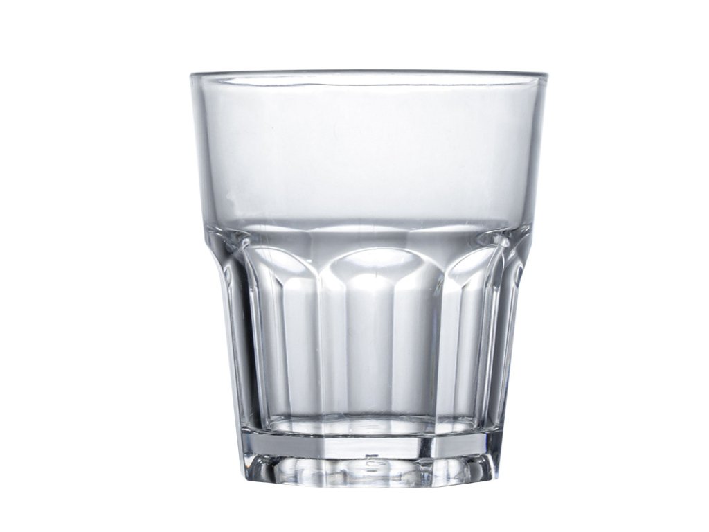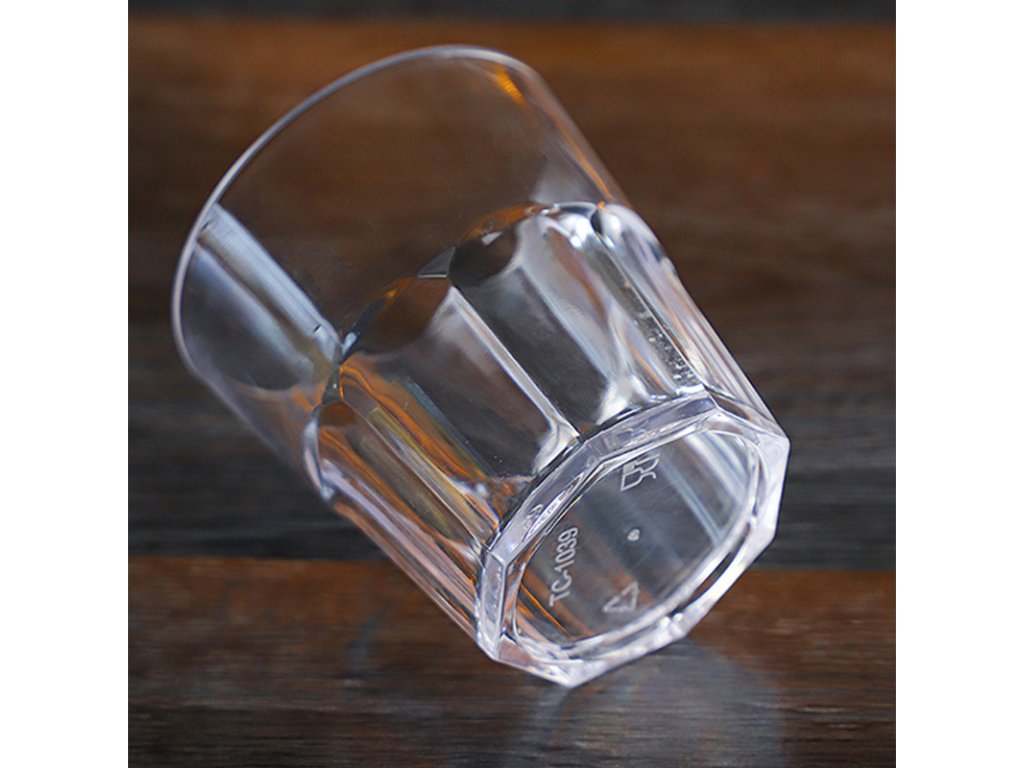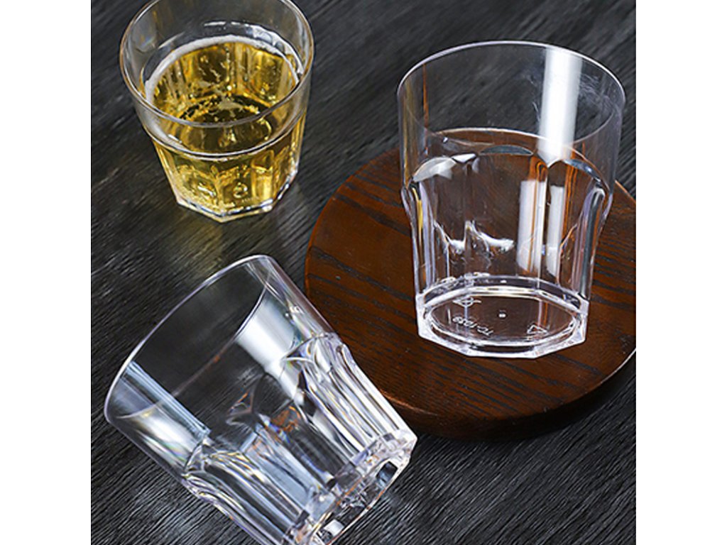Sada 4 kusů plastových sklenic vyrobených z průhledného akrylového PC plastu. Mají mnohostranný tvar a vzhledem připomínají sklo. Sklenice jsou vysoké cca 9 cm s průměrem cca 8 cm a objemem cca 260 ml. Jsou ideální pro bary KTV catering nebo jakékoli velkoobchodní použití kde je vyžadována odolnost a vizuální atraktivita bez rizika rozbití.