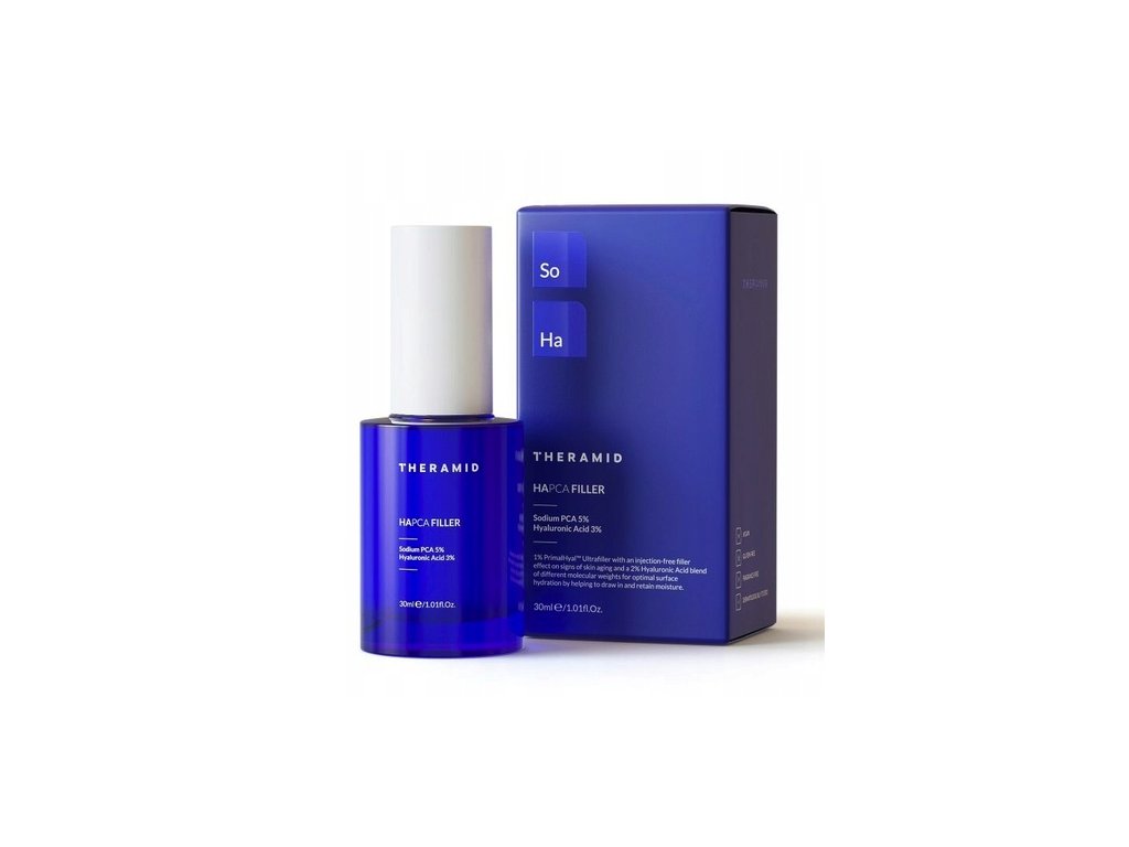 THERAMID HAPCA Filler je inovativní pleťové sérum s kombinací kyselin hyaluronové pro intenzivní hydrataci a vyplnění vrásek. Je určen pro všechny typy pleti a má dlouhotrvající účinky.